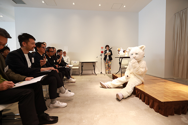 私はいつもイメージや空想から作品を考え始めます。それから、少しずつ頭の中の曖昧なイメージを絵を描いたり人と話したりする中で具体的にしていきます。最近は既製品の置物を材料にしているのですが、ネットなどで古い置物を探すところから始まり、それらと対話しながら組み換え新しい姿に生まれ変わらせるような感じで進めています。着ぐるみの作品は私の願望を割と素直に表現したもので、いろんな可能性を感じています。