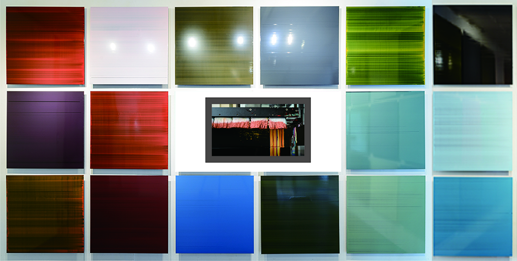 - 華やかな都市。綺麗な商品も装飾も様々な労働が介在している。街の色を抽出し機械で生産される本作は、社会のコントラストを可視化する。