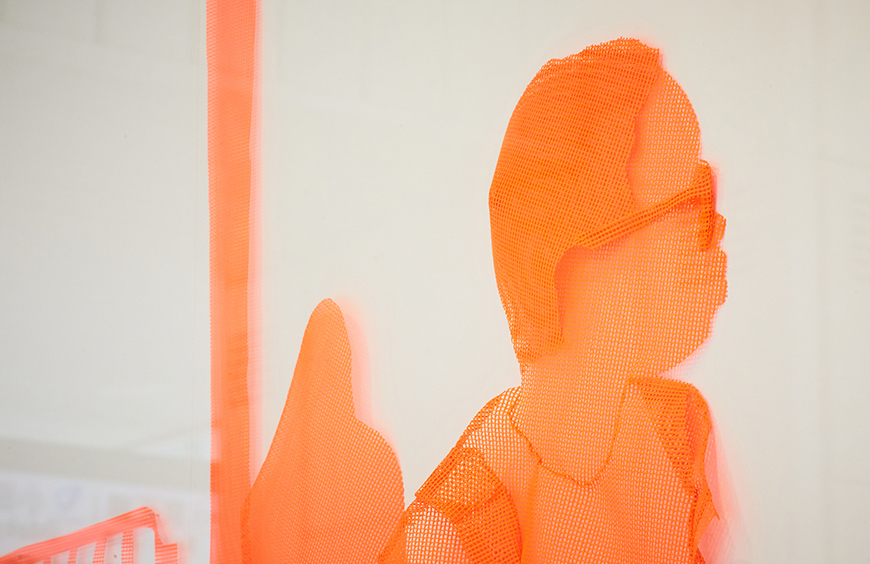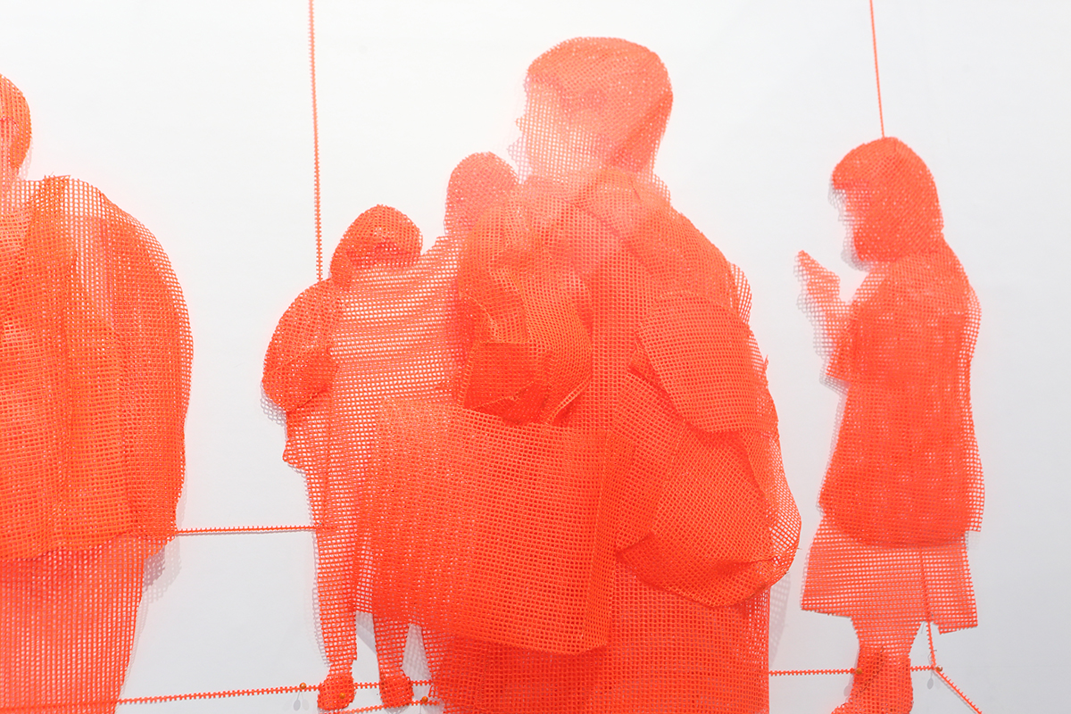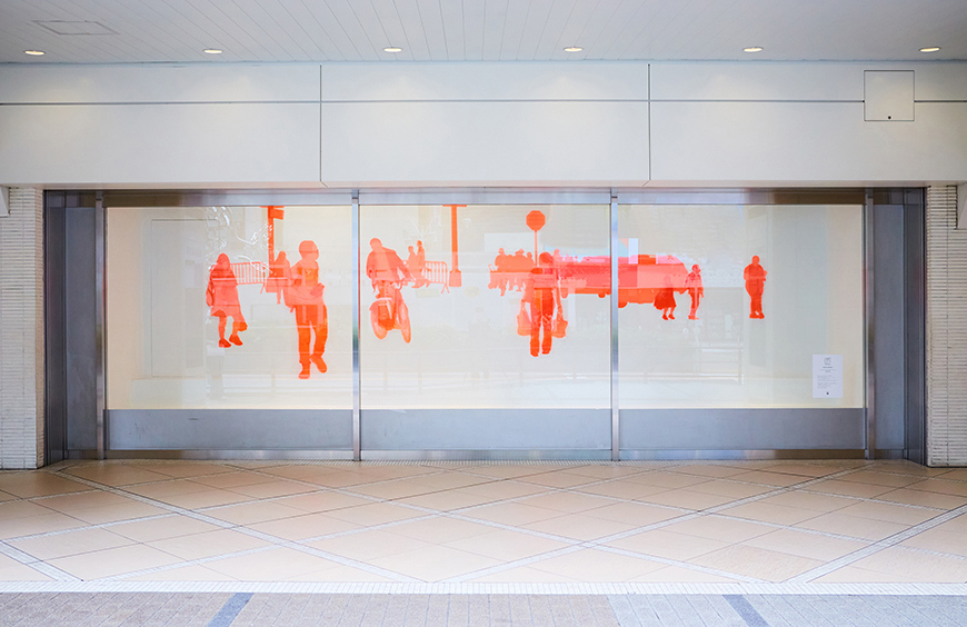 - 今回展示させていただく作品は、”I am Here@Red Hook Houses, September 25, 2019, 5:15pm, Brooklyn, NY” RedHook Housesというブルックリンにある集合住宅の中での日常の風景を作品にしたものです。日本とNY 違う国、場所ですが人々が集まり作る空間というのは、どこか似たものがあります。この風景は2019年9月25日夕方5時15分に撮影した写真から制作しました。人々が帰宅したり、学校帰りの子供達が歩いています。地球上の色々な場所で人々が”今”存在しているその一瞬に作られる美しい空間をこれからも制作していく所存です。
