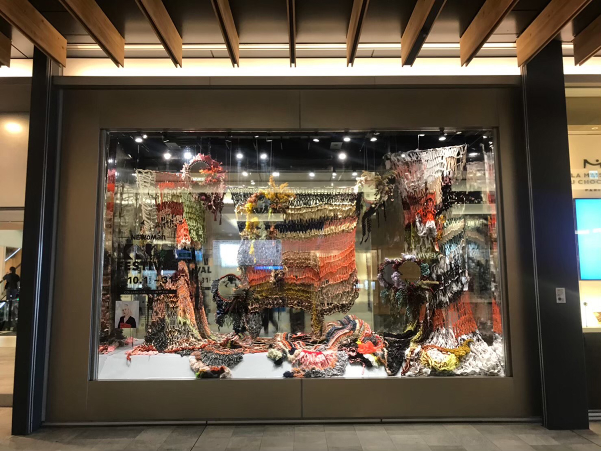 中でも、InstagramなどSNSでも人気の若手ニットデザイナー蓮沼千紘氏によるウィンドウやエントランスの装飾や、アーティスト河本連大朗氏によるニットの端切れを使った作品展示などは多くのお客さまから好評を得ました。