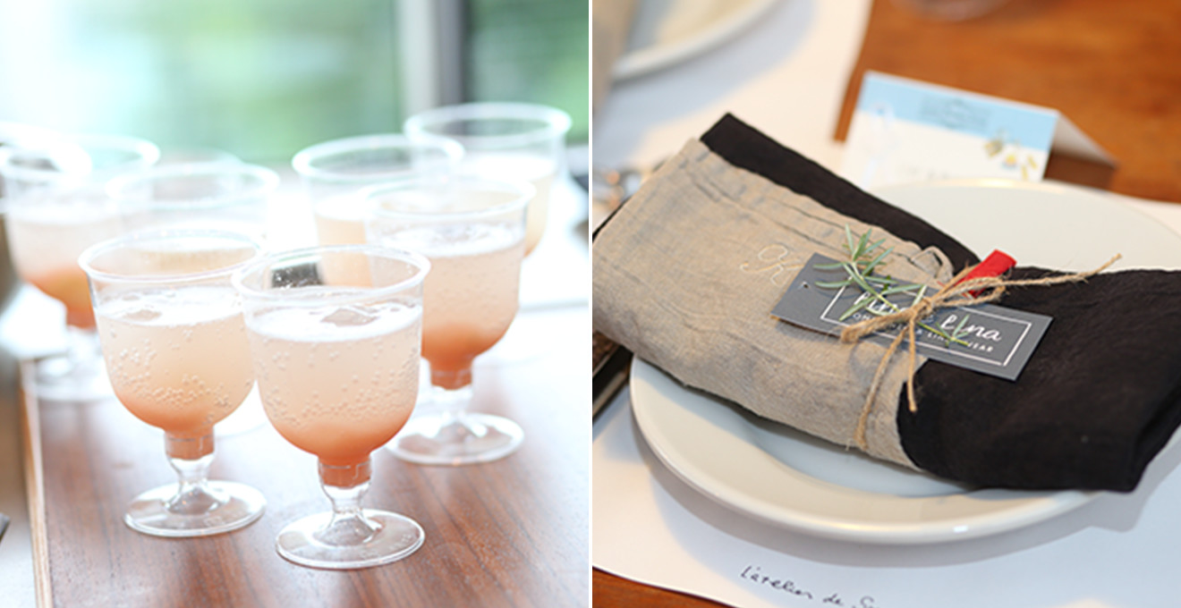 参加者のみなさんが着席したテーブルの上には、SHIORIさんも愛用されているブランド「Lino e Lina(リーノ エ リーナ)」のエプロンが。実はこのエプロン、左胸にみなさんそれぞれのイニシャルが刺繍されていて、イベントが終わってからも愛用していただけるように特別にプレゼントとして用意されたものなんです。