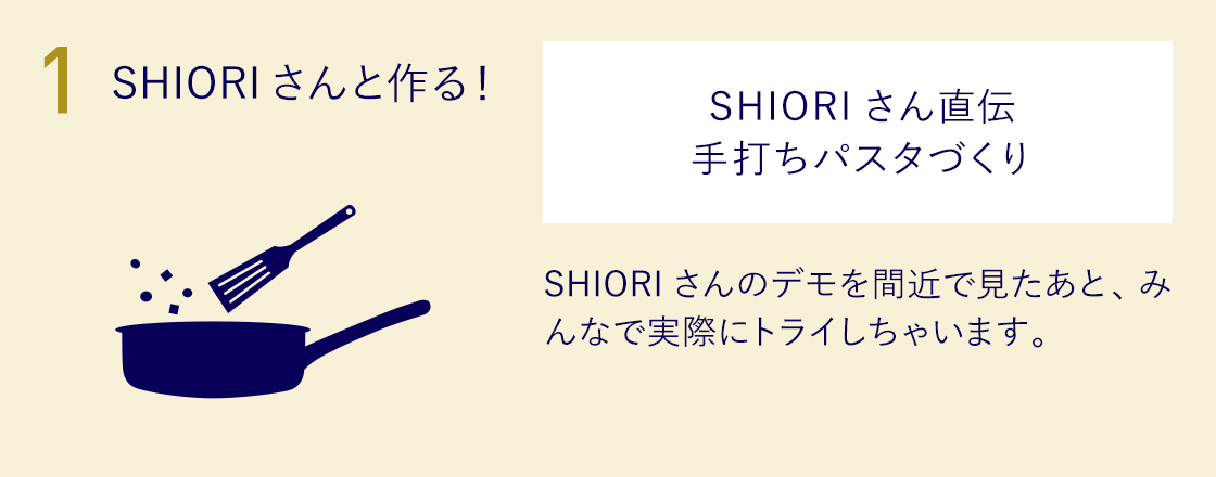 「今日はイタリアに旅をした気分で、手打ちパスタに挑戦していただきたいと思います!」とSHIORIさん。手打ちパスタを作ったことがある方ってなかなか少ないのではないでしょうか。今回は初心者でも時短で簡単にできるレシピに挑戦できるとのこと。