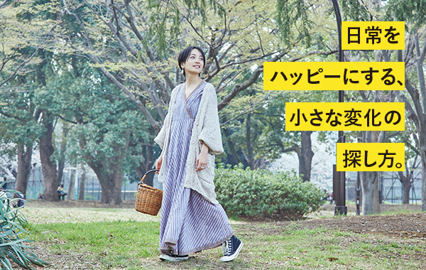 小さい幸せの見つけ方も、本当に毎日意識してみると、見つけるのが得意になっていくし、やらないでいると勘は鈍ってきて。わたしは、バタバタして部屋が片付いていなかったり、人への気遣いが雑だったりすると「ズーンッ」ってなるから、そういう風にならないように、「ちょっと無理してでも、こっちの方を向こう」って思うときもあって。