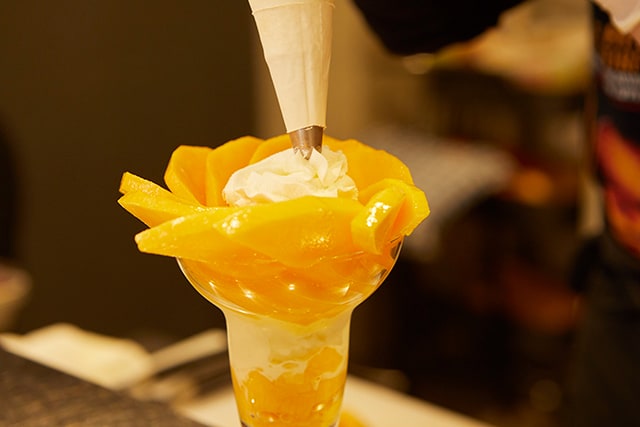 とにかく、他のスイーツと差別化できるのは、五感で楽しめること。例えば、ケーキの場合ならお持ち帰りすると香りが飛んでしまいますし、温度も均一化しています。コーンフレークやフイヤンティーヌのような素材も、1度、濡れてしまったらサクサク感が失われてしまいます。でもパフェはその場で食べるものだから、香りや舌触り、食感を損なわずに五感全体で楽しむことができるんです。