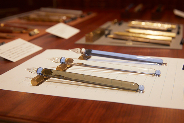 そのひとつとして最近出したのがGLASS NIB。既製品の軸にも、カキモリオリジナルの専用軸にも差せるガラスのペン先です。一般的にガラスペンは軸とペン先が一体になっていますが、「ガラスペンって楽しい。でもペン先が付け替えられたら、もっと道具として使い勝手がいいよね」と商品企画のスタッフが考え、みんなの賛同を得てつくりました。