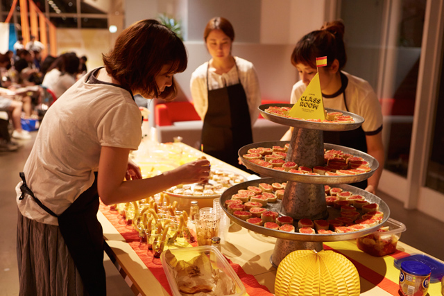 トーク終了後の交流会に向けて、会場の一角ではケータリングの準備が着々と。今回用意してくれたのは、現在、WORLD BREAKFAST ALLDAYで提供しているスペインの朝ごはん。