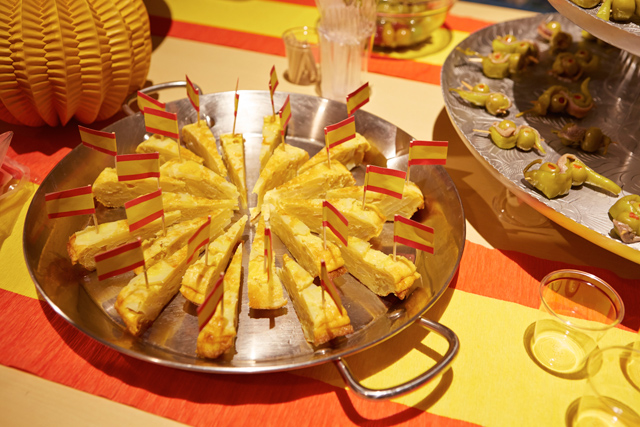 左は、日本でもよく知られているスペイン風オムレツ「トルディージャ」。やはり朝食でもよく食べられているのだそう。右は、オリーブとアンチョビを串で刺した「ピンチョス」。