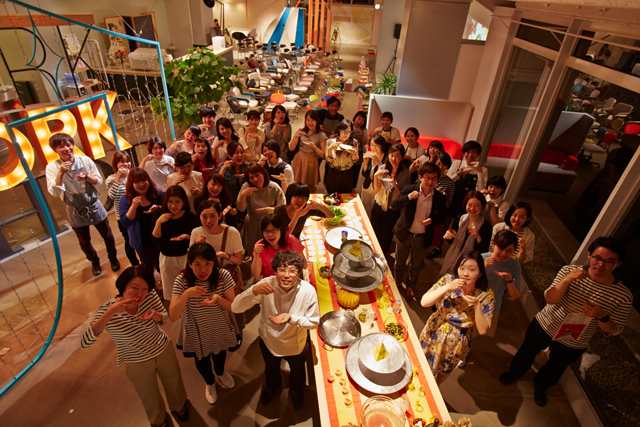 食べてしゃべって、最後は全員で記念撮影。「何かポーズを考えてください」と無茶ぶりされた木村さん、考案したのがこの“いただきますポーズ”。すっかり空になったテーブルを囲んで、夜の「朝食会」はお開きとなりました。