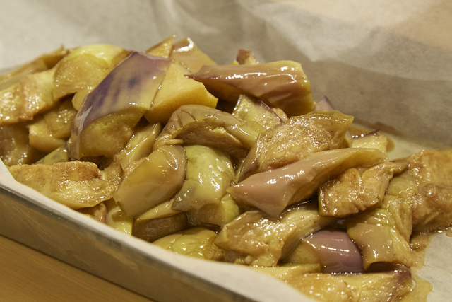 まだまだあります。赤ナスの甘酢漬けは、この時期にぴったりのさっぱりした一品。