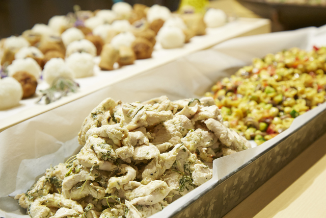 ハーブチキンに、スパイスの効いた豆とパスタのサラダ。平野さんと参加者のおなかを満たせるように、メニューは盛りだくさん!