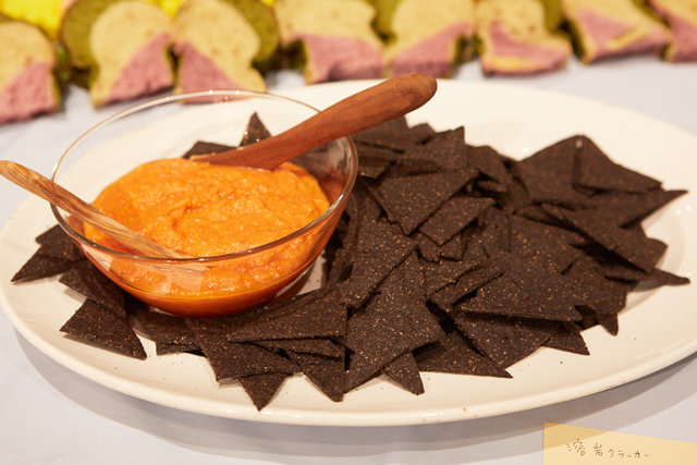 こちらは、黒ごまやココアでできた“溶岩クラッカー”とレンズ豆やパプリカを使った“マグマディップ”。