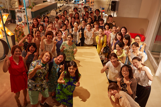 最後は、恒例の記念撮影。赤澤さんの講義と、おいしいハワイアンフードのおかげか、みなさん、交流会ですっかりリラックスした様子。小指と親指を立てるハワイのあいさつ「シャカサイン」とともに、全員でにっこり笑って「アロハ〜!」。