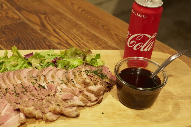メインは、ローストポーク。特に変わった料理には見えませんが……添えられたソースはなんとコカ・コーラをベースにつくったもの。