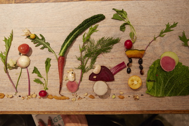 第2位には、同じ数の票を獲得したふたつの作品が選ばれました。こちらは、塩やピンクペッパーの粒で、野菜に顔を描いた遊び心のある作品。野菜の“かわいらしさ”が、キャラクター化したことでより引き出されています。