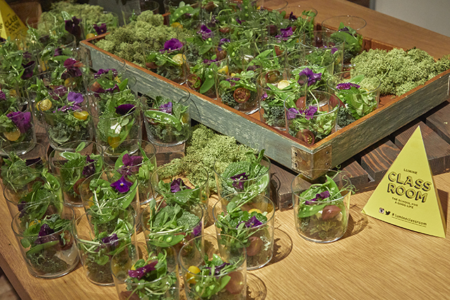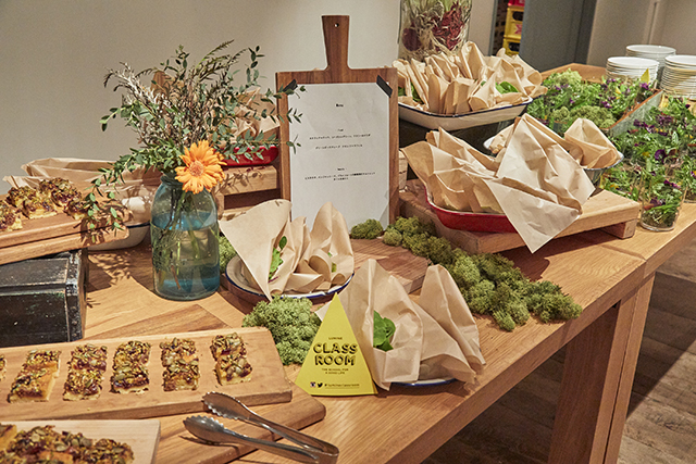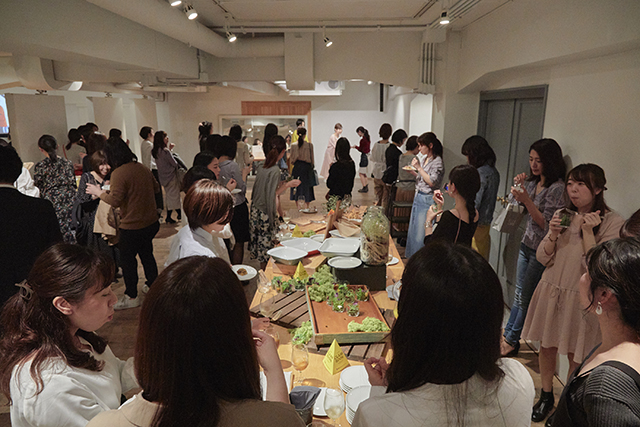 日頃、展示会やパーティーで発注主のコンセプトに合わせたフードを提供するザ・ワークスさんは、今回、高山さんからのリクエストで、「グリーンのブーケ」をイメージした、見栄えも楽しいフードを提供してくれました。