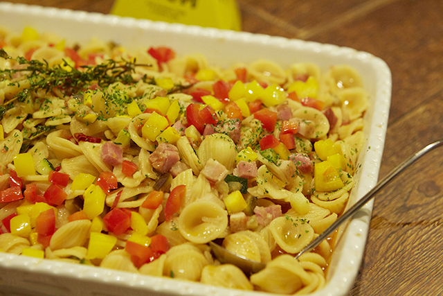 これは野菜のラグーオレキエッテ。オレキエッテとは、「小さな耳」という意味の言葉。そんなパスタにサイコロ状のカラフルな野菜を和えて、ピアスに見立てています。ピリッとした味わいにどんどん食が進みました。