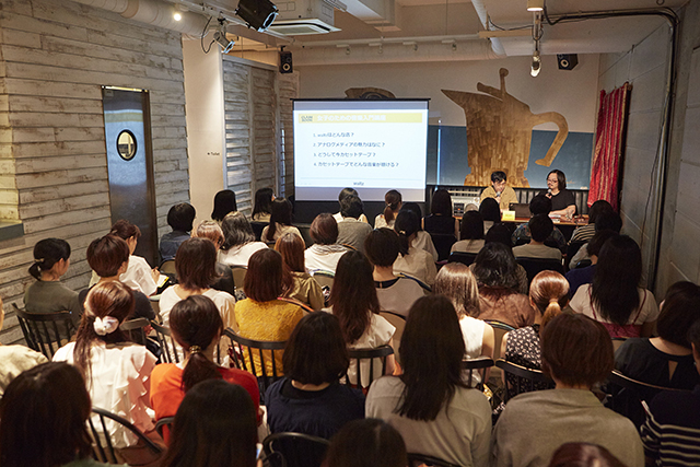 講義が始まるとすぐに、角田さんはアナログで聴く音楽の魅力について話しはじめました。まるで、話を聞きに来てくれた参加者のみなさんを特別な場所に招待していくみたいに。