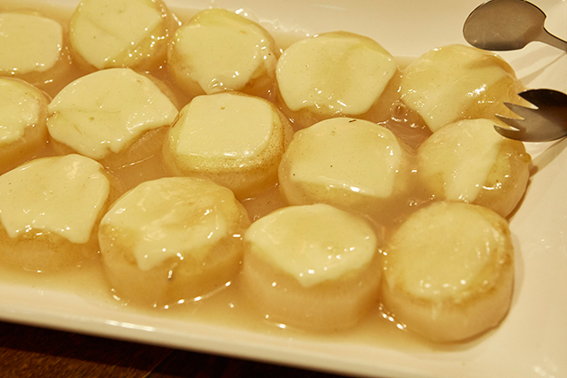 2品目は風呂吹き大根のモッツァレラチーズがけ。大根に出汁がしみていて、口中に旨味のエキスが広がります。モッツァレラチーズの歯ざわりに食べ応えも感じられました。