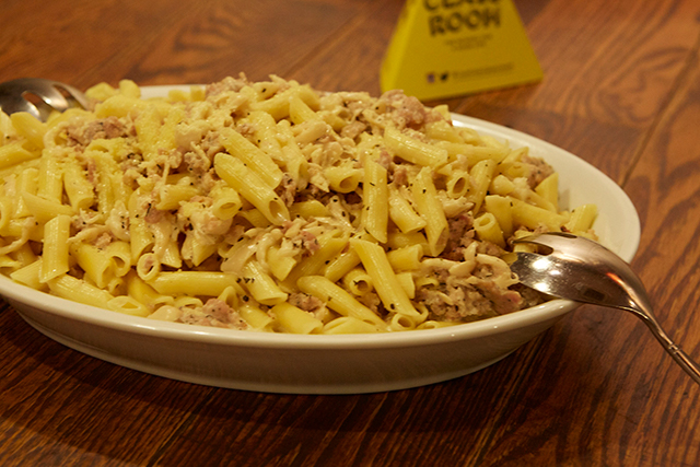 3品目はサルシッチャと白いキノコのクリームペンネ。本日のメインです。サルシッチャというのはイタリアのソーセージ。コショウの加減が絶妙なアクセントになりつつ、クリームに隠れた白いキノコがふいに口中で旨みを広げてくれる、食べるごとに至福を感じさせてくれるペンネでした。