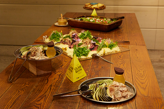 4月講義では、HOTEL SHE, KYOTOと同じく、龍崎さんのリクエストで「オアシス」というテーマの料理を振る舞いました。砂漠のなかに安らぎを与えるオアシスを、カフェパークはどのように料理で表わしたのでしょう。
