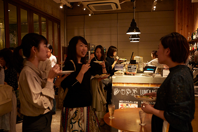 おいしく料理を楽しみながら、参加者と交流していた龍崎さん。最後のあいさつを聞いて、この日のイベントは終了です。