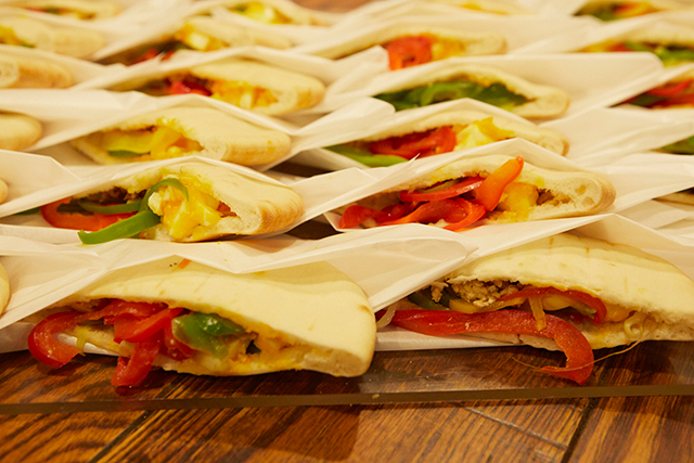 2品目は、「ガパオミートのピタサンド」。日差し降り注ぐ野外で、なぜか食べたくなってしまうタイ料理。かぶりつくたび、鶏肉とパプリカ、目玉焼きの旨味が伝わってきて、二口、三口と進みます。