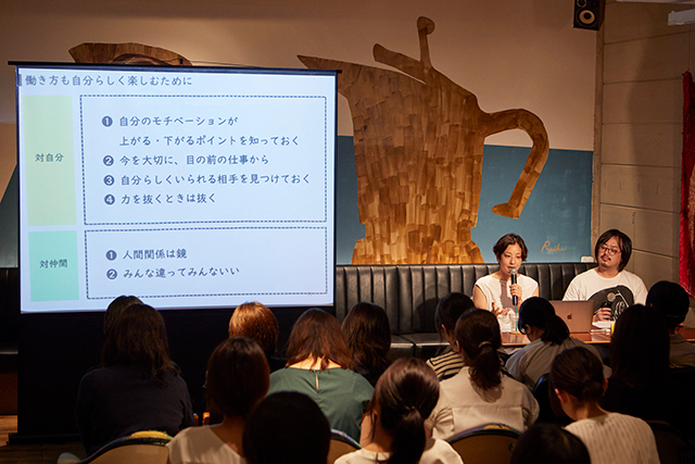 8月講座は、株式会社スープストックトーキョー取締役副社長 兼 店舗営業部長の江澤身和さんをお迎えしました。「働き方“開拓”」と銘打って、年間休日休暇120日を確保する「生活価値拡充休暇」や、複業解禁で個人の仕事の幅を広げる「ピボットワーク制度」など、人を大切にする人事制度をつくる江澤さんに、働く上で大切にしていることを教えてもらいました。