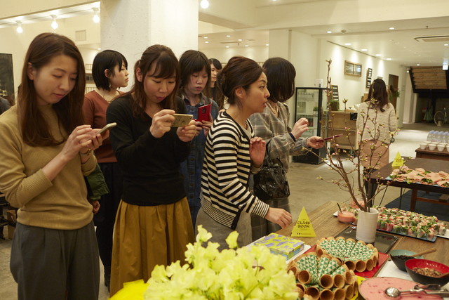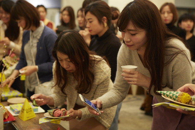 参加者のみなさん、はやりスマートフォンでパチリ。これもひとつのデジタルと料理の融合……でしょうか?