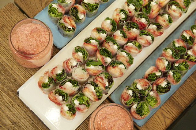 ふたつ目は、なんとイチゴの生春巻き! 同じくイチゴを使ったソースをディップして。