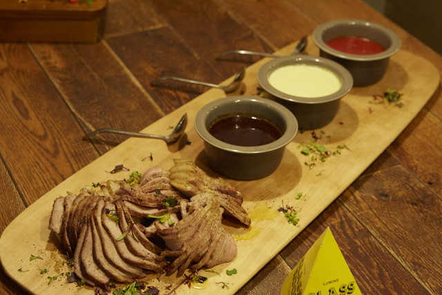 トマトソース、ローストガーリックソース、ネギのクリームソースと、3種類の異なるソースで味わうローストポークがメインディッシュ。それぞれの個性が、ローストポークの味を引き立てます。