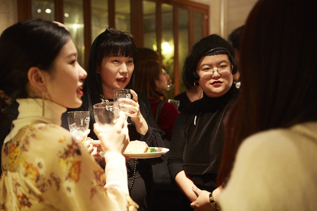 飲み物と料理を手に、ゆったりとした時間が流れます。「個性」がテーマの講座に集まっただけに、参加者のみなさんの装いもファッショナブル。
