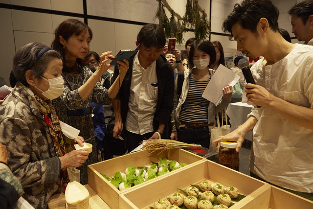 講座の合間には、おむすびの試食タイムも。今回、おむすびを結んでくれたのは、出張専門のおむすび屋「山角や」さん。「びっくりするくらいおいしい」と主宰の水口拓也さんも絶賛する「相田家産スーパーコシヒカリ」。どんな具が用意されたのでしょうか。