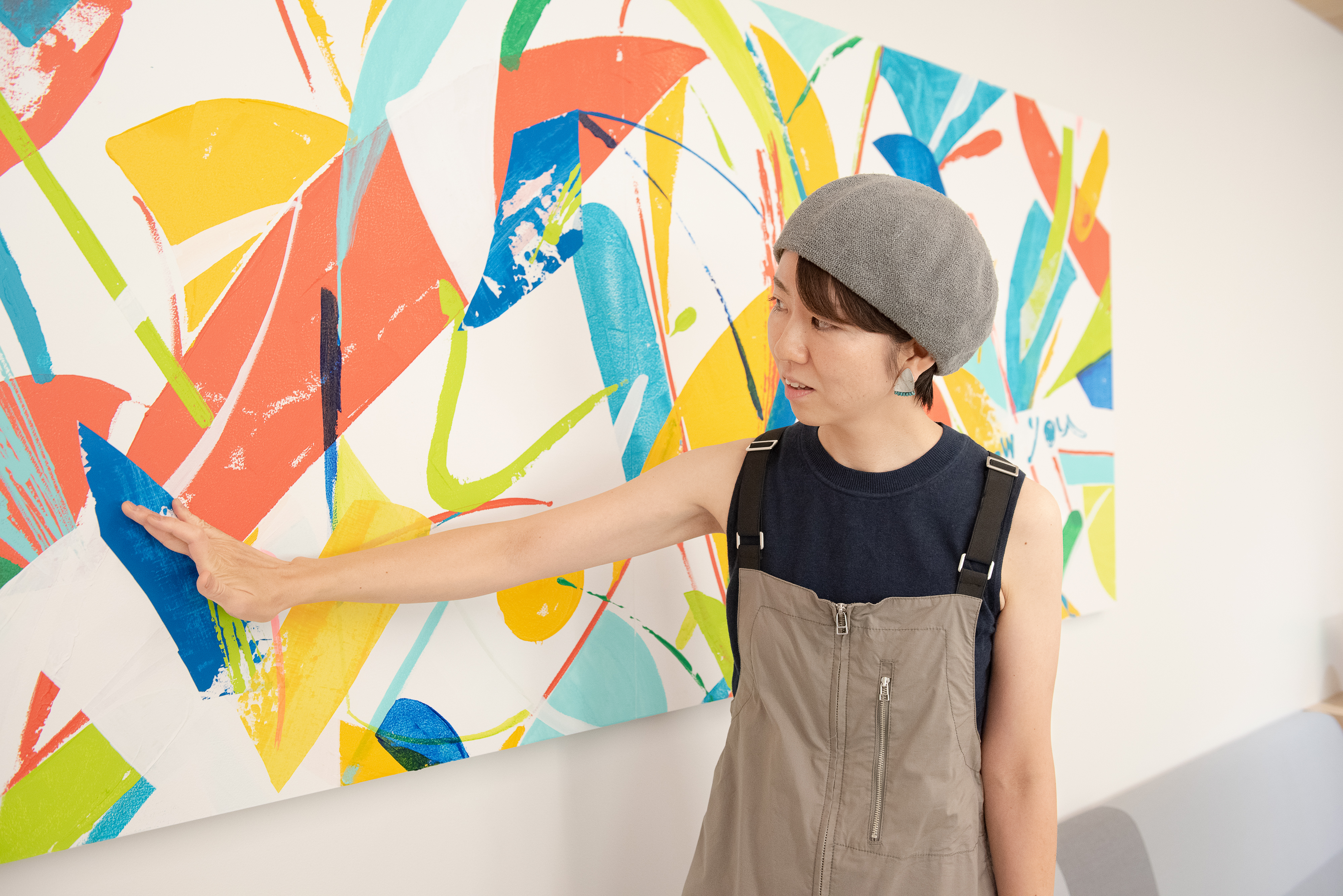 「私はずっと、旅先にステイしながら日常に入り込み、土地や人々のエネルギーを感じながら作品を制作してきました。完成した作品がそのまま現地に残り、新たな風景を生み出していくことを願いながら。今回のルミネとのプロジェクトも、私にとってはその延長線上にあるもの。現場での3日間の制作中、通りすがりの社員やゲストの方が話しかけてくれて、まるで旅先で現地の人と交流するような楽しさがありました。制作しながら感じた本社の明るくてオープンなムードが、作品のカラフルで躍動感のあるタッチに反映されているかと思います」