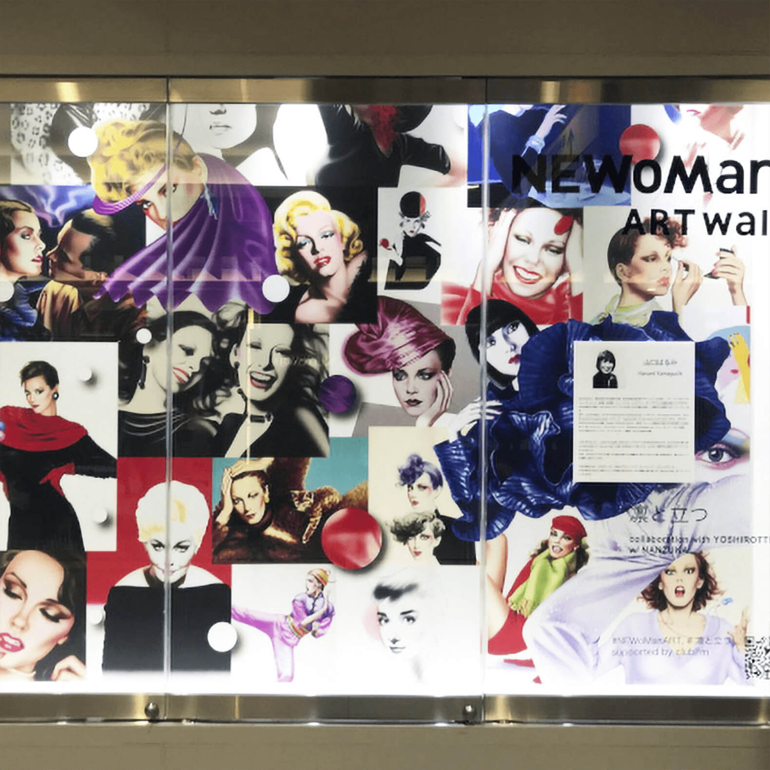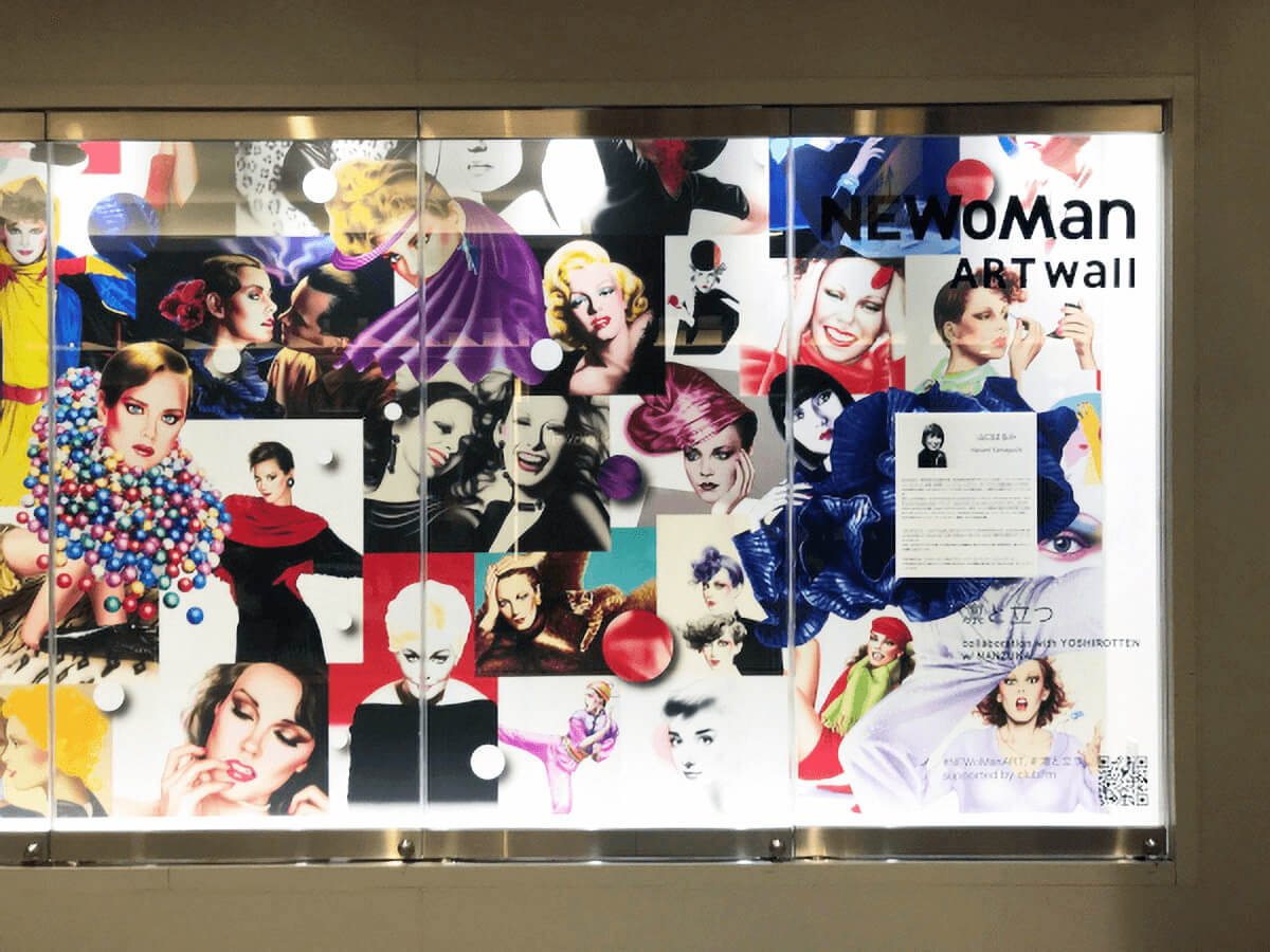 第15回目の「NEWoMan ART wall.」は、NANZUKAのご協力のもと、コラボレーターにYOSHIROTTENを迎え、山口はるみのオリジナルコラージュを展示します。1970年代に入り、これまでとは違った新たなライフスタイルを求める女性たちは、山口はるみが描く凛と生きる女性たち “Harumi Gals” を強い共感を持って受け入れ、山口は一躍時代を象徴するアーティストになりました。近年、山口のエアブラシを使った作品は海外での展覧会に招かれるなどの高い評価を受け、新たなファンを獲得し続けています。今回の展示では、コラボレーターであるグラフィックアーティスト/アートディレクターのYOSHIROTTENが、雪のイメージを織り交ぜながら、冬の季節を凛と過ごす “Harumi Gals” をコラージュしています。