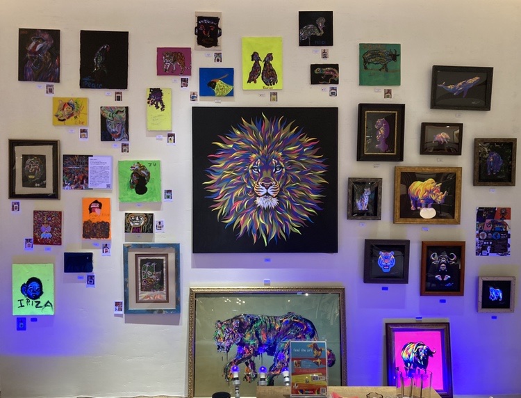2016年帰国後、絵画制作を本格的に指導。蛍光色を含む色彩豊かなポップアート的な作品を生み出している。