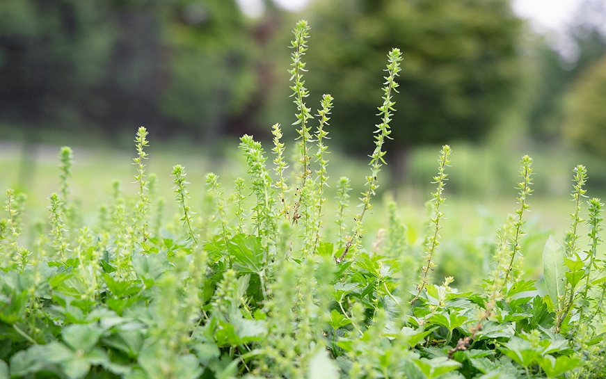 富士河口湖町の自社工場から車で約30分の自社農園では、写真のゲンノショウコをはじめ、アマチャヅル、和ハッカなどの植物を育てている。これらを収穫後、乾燥させて抽出したエキスを化粧品に配合