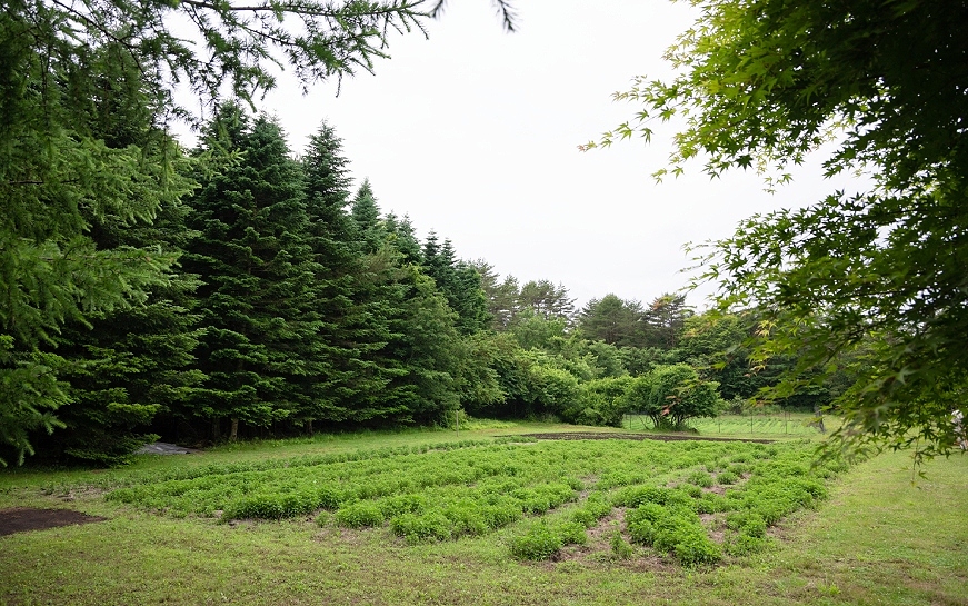 自社農園は自然が豊かで、鹿などの野生動物が現れることもしばしば。農薬や化学肥料を使用しないのはもちろん、水も極力散布せず、植物そのものがもつ力を最大限に引き出すことを目指している