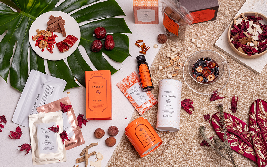 美しいデザインが目を引くDAYLILYの商品。漢方のお茶や食材、コスメなど幅広い。