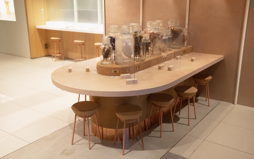 ところで、コロナ禍になってから、家飲みの機会が増えた人も多いはず。ワイン好きのあなたは、家でワインを開けたあとに残ったコルク栓を「TOKYO CORK PROJECT」に提供してみては? ニュウマン新宿では16年に開業して間もないころからずっと、2階のインフォメーションコーナーの脇に、コルク栓の回収ボックスを設置している。これも実は、「TOKYO CORK PROJECT」の一環。自宅から持参したコルク栓を回収ボックスにポンと入れれば、やがて立派な再生コルクとして甦るのだ。