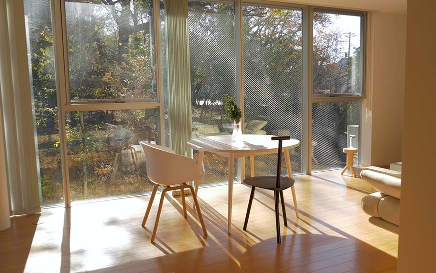 そこで、自然の移り変わりを感じられるような場所に移りたいと思い、見つけたのがこの場所です。目の前には公園が広がっていて、ダイレクトに自然を感じられる。鈴虫の鳴き声で秋の訪れを予感したり、木の葉が落ちて公園全体が見渡せるようになったことで冬を実感したりと、観葉植物からは感じ取れない季節の変化に気づけるんです。