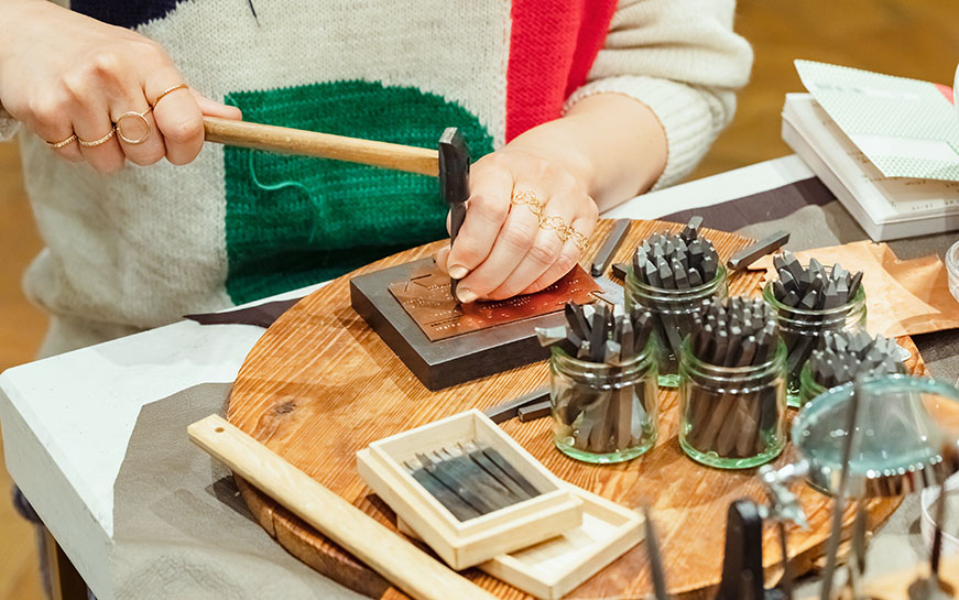 各ショップでもスペシャルなイベントが勢揃いしました。「SALON adam et rope'」では、人気アクセサリーブランド「JOLILI」のポップアップストアが開催されました。シルバーパーツを選び、好きな文字や言葉を刻んでもらえる刻印サービスの実演も。刻印したパーツはお客さまと相談しながらブレスレットやバングル、リング、ネックレスなどへと加工され、オリジナルのアクセサリーがその場で完成。希望すれば自分で刻印を体験できるとあり、なかには小さなお子さんと一緒に楽しむファミリーの姿もありました。その他、全46ショップが新しい季節のお買い物を楽しんでいただけるイベントを用意しました。