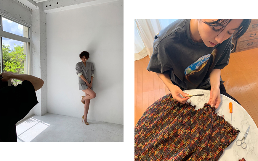 モデルはモデル、デザイナーはデザイナー。同じファッションの仕事ですが、頭の使い方はまったく違います。クリエイティブなスタッフに囲まれて、カメラの前でポーズを取るのも楽しいですし、生地屋さんでひとり、黙々と生地を探している時間もとても有意義だと感じています。実は、自分のブランドではあたらしいことに挑戦する気持ちを忘れないためにも毎月ゾロ目の日には新作を出すという「マイルール」を設けているんです。スタッフの方から「そろそろですよ」ってリマインドされるのですが、時間がない中でも楽しめる。それってやっぱり“好き”だからなんですよね。本当にファッションが好きだからこそ、忙しい中でもやれているのかなと思います。