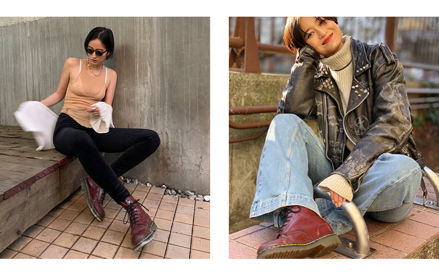 コーディネートの軸になるブーツです。いろんなブランド、いろんな形のブーツを持っています。意外とどんなファッションにも合うし、使い勝手がいい。お気に入りはドクターマーチンのブーツ。何足も持っていますし、昔からはいているものもお手入れしてはきつづけています。愛着が湧いてくるというか、基本的に処分することがないので、溜まっていく一方です(笑)。