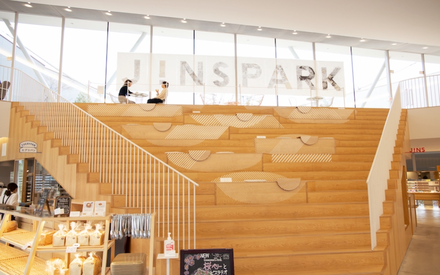2021年4月に群馬県前橋市に誕生した「JINS PARK」にはベーカリーカフェを併設。誰でも利用できる屋外広場のほか、腰かけられる大階段や吹き抜けスペース、屋上テラスも。設計は永山祐子建築設計