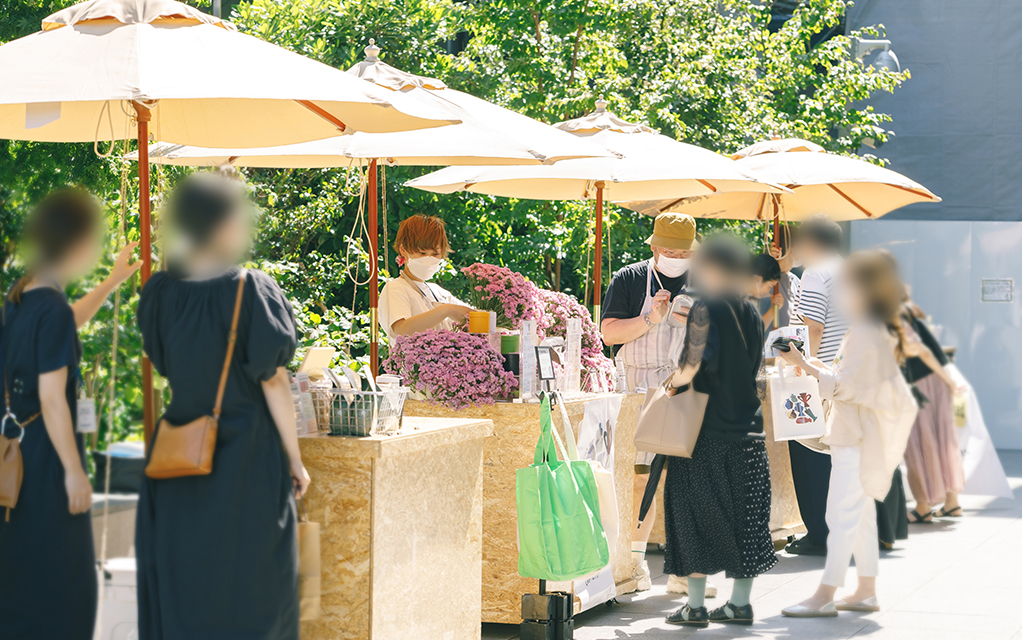 また、日本茶のセレクトショップ「a drop . kuramae」の日本茶飲み比べ体験や、スパイスの香り豊かなチャイが人気の「uRn . chAi&TeA」のショップなど、特別感のあるお楽しみも紹介されました。ガーデンにはワークショップに参加するお客さま、お買い物ついでにポップアップショップに立ち寄るお客さまなどが訪れ、思い思いのチルタイムを満喫する姿が見られました。