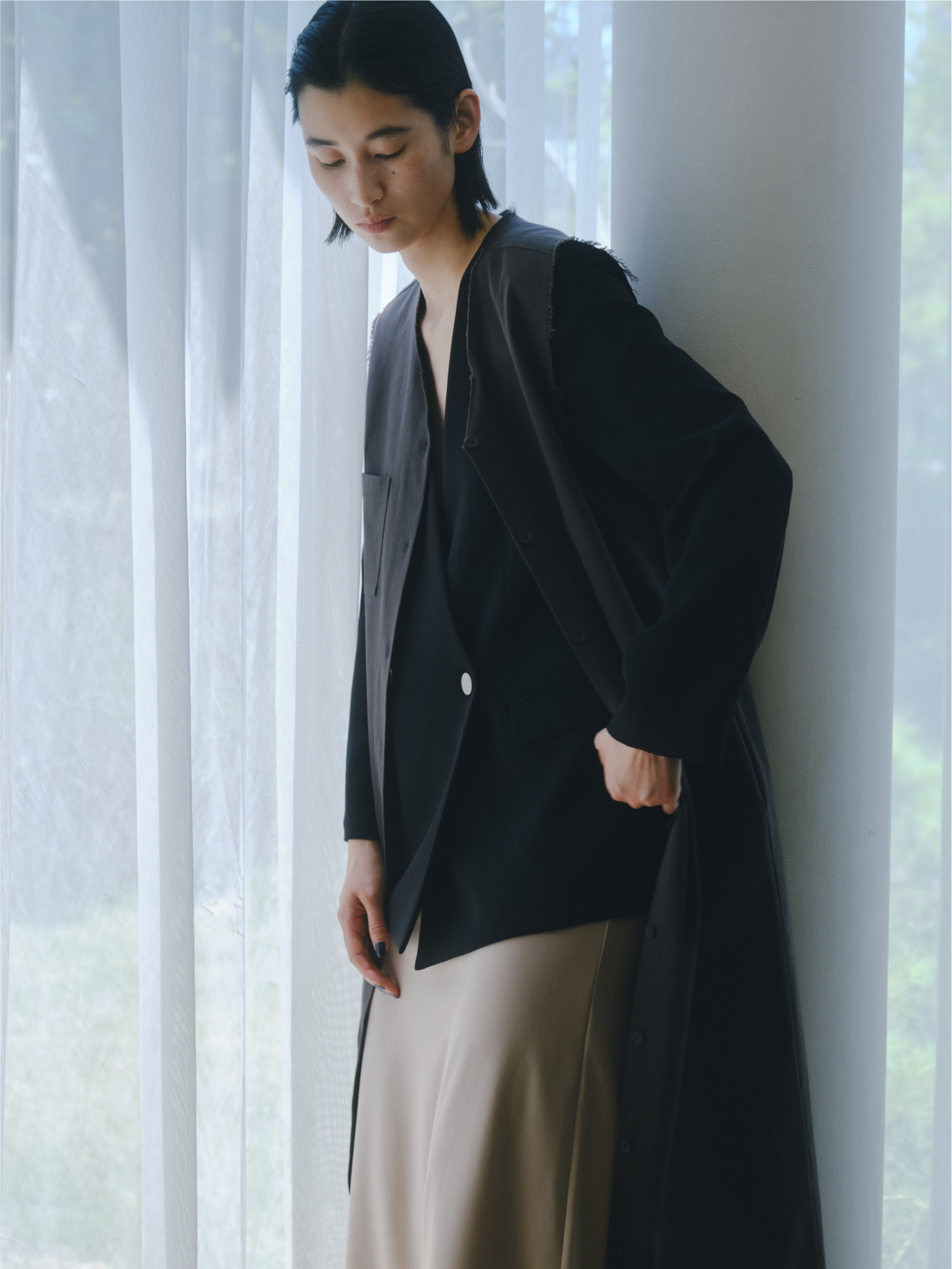 〈STYLE 02〉ノーカラーブレザーの上品な柔らかさ