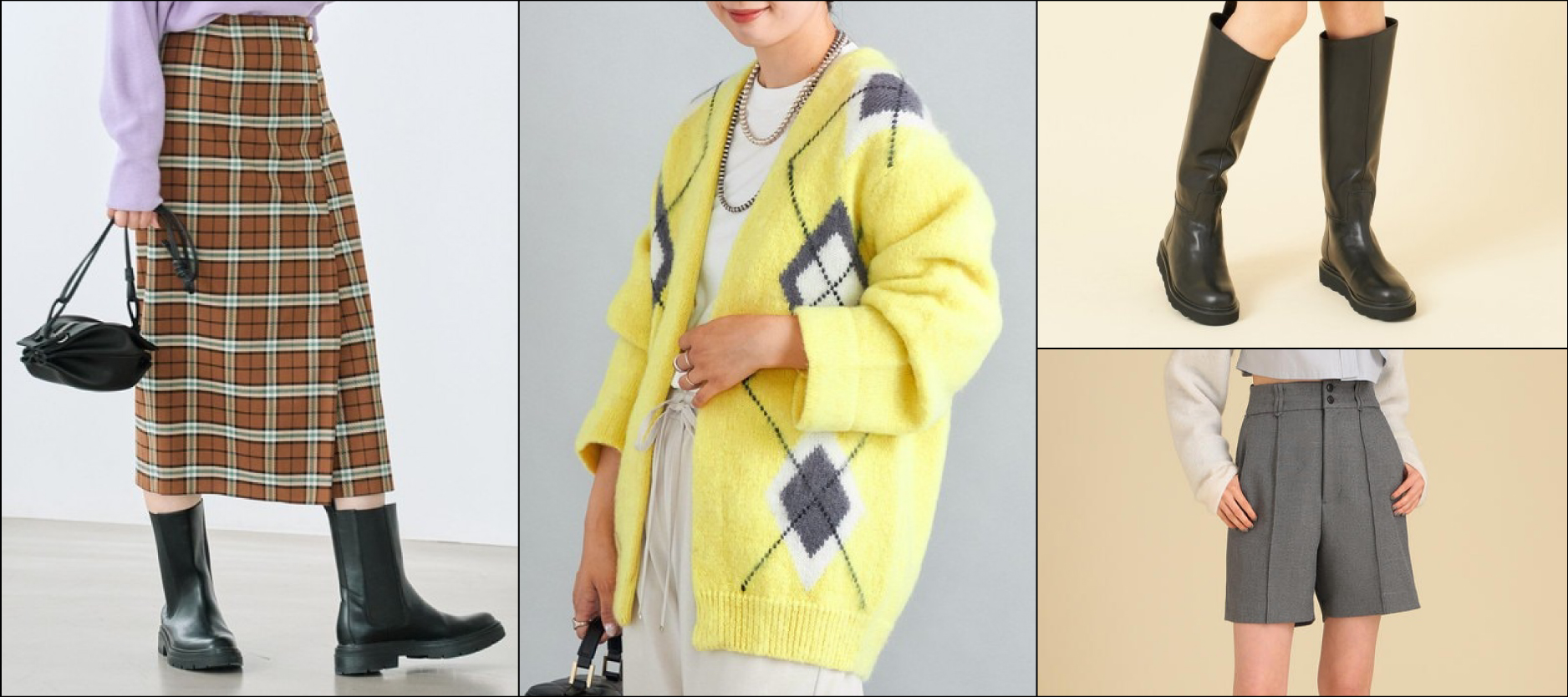 クラシックなチェックやアーガイルは、今シーズンのマストアイテム。旬なシルエットや素材感とミックスする今年らしい着こなしで楽しんで。