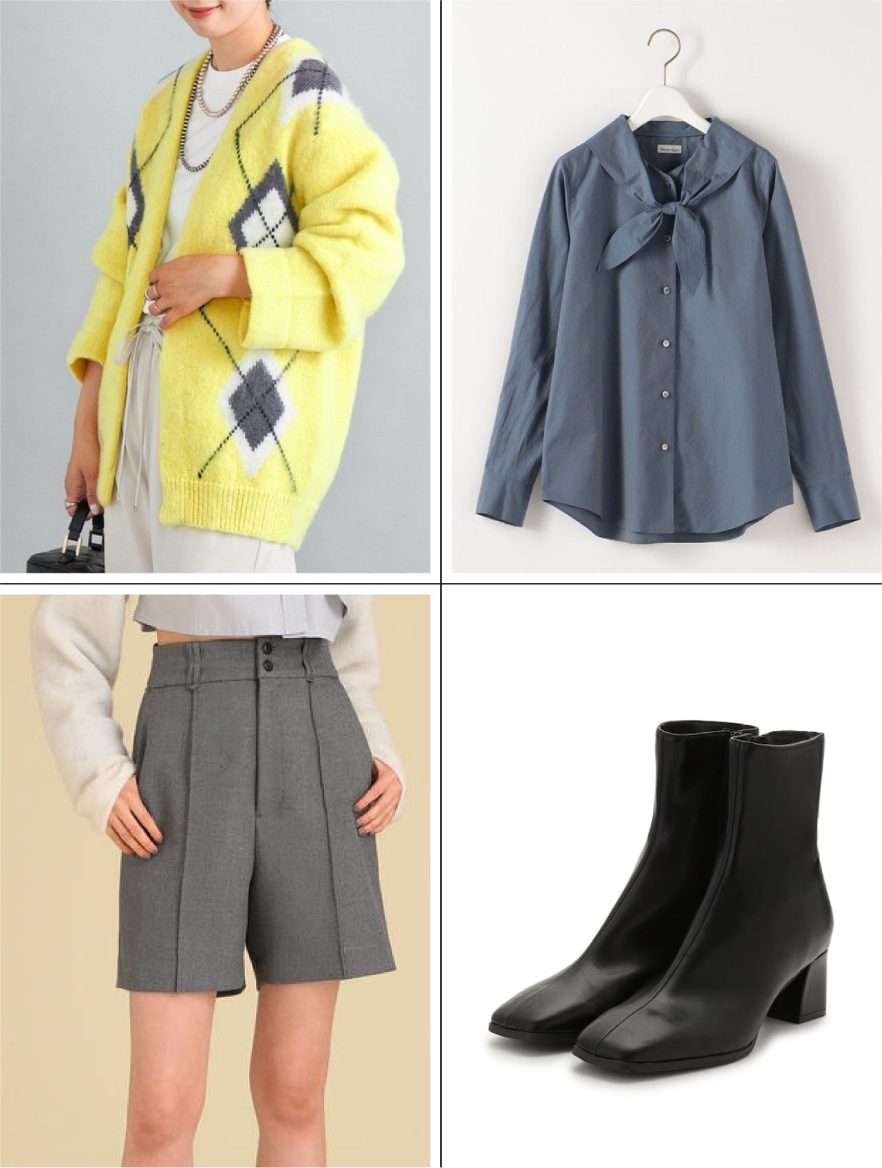 アーガイルカーディガンのトムボーイスタイルも、