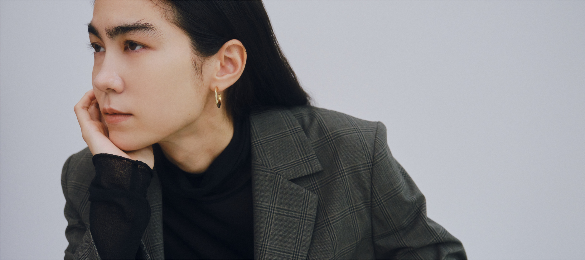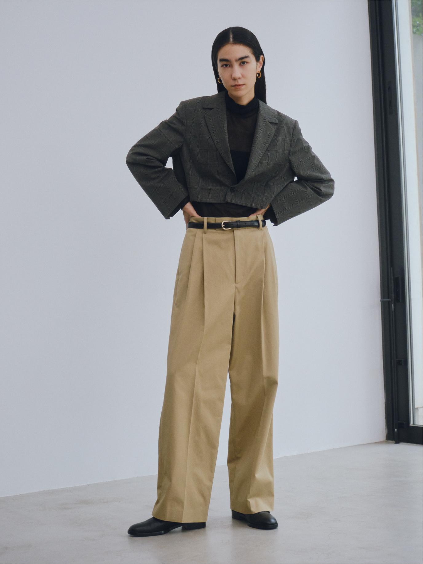 〈STYLE 02〉チェックジャケットには透け感をプラス