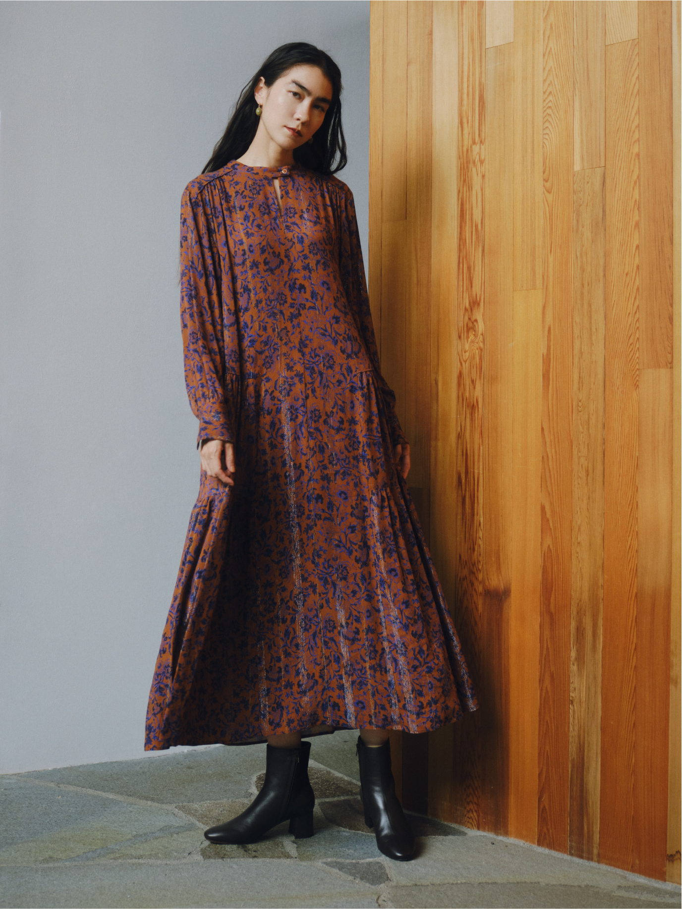 〈STYLE 01〉シックな色合いが旬な植物柄のワンピース